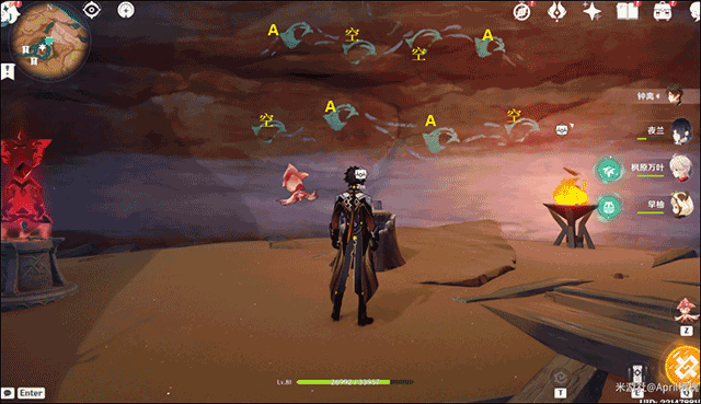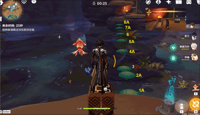 开启对应浮空菇挑战:A空A空A空A空;