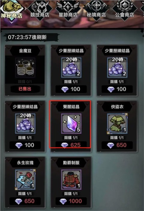 觉醒材料和金豆子也可以兑换,尤其卡觉醒的时候。