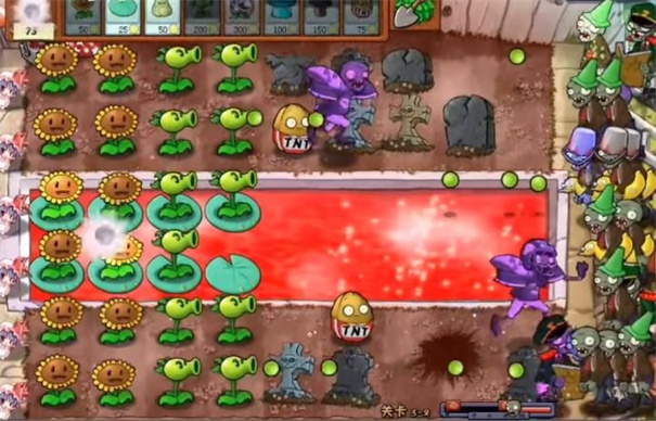 4、右下角为关卡的进度,当进度条满后会出现大量的僵尸,击败这些僵尸就可以通关。
