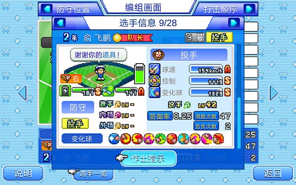 玩家需要扮演一位棒球队的经理,进行棒球队的管理经营;你需要制定训练计划,招募合适的队员,进行训练和比赛安排等,全面掌控球队的发展;