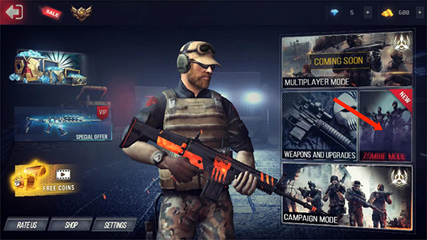 1、打开Combat strike队战斗狙击枪射击游戏,