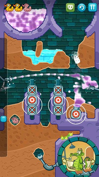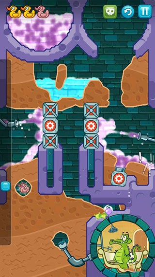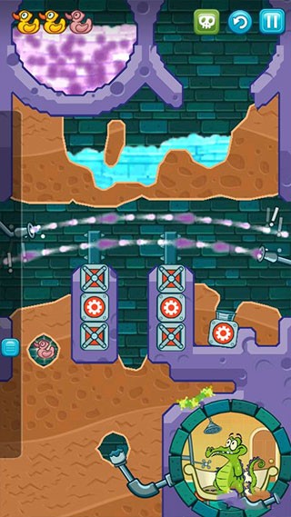 鳄鱼小顽皮爱洗澡是一款非常好玩的休闲益智手游,又名鳄鱼小顽皮爱洗澡,游戏的背景故事讲述了一只叫小顽皮的鳄鱼住在城市下水道中,他最大的爱好就是在结束了一天的忙碌工作后回家好好洗个澡,但是下水道中有着各种各样的障碍阻挡了小鳄鱼洗澡,因此小鳄鱼需要你的帮助,帮助他清理各种障碍,将水导入浴缸中。你需要利用物理原理,挖通土壤引导干净水、脏水、毒水、水蒸汽、泥水通过越来越富挑战性的场景,每一滴水都是获胜的关键,在清理过程中,还可以收集小鳄鱼最喜欢的小鸭子,玩起来十分有趣。
