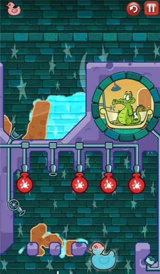5、让水成功流到小鳄鱼位置,让小鳄鱼成功洗上一个舒服的澡即可通过关卡;