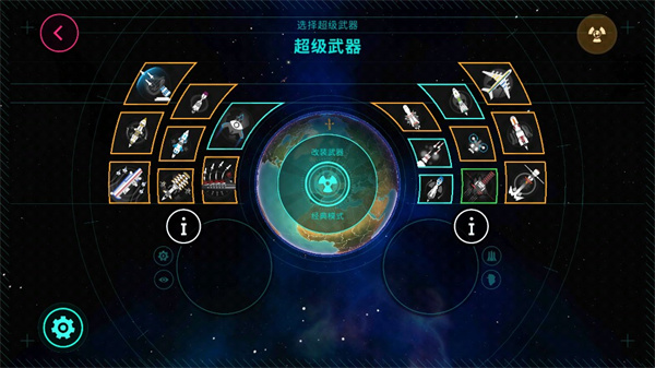 2、首先我们来选择国家,左右两侧有详细的国家介绍和武器介绍;确定好国家后,选择超级武器进入经典模式;