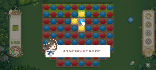 【苔藓】会跟随消除的元素扩散,游戏中通过匹配可以使苔藓扩散开来,苔藓通关效率口诀:先找苔藓,慢消扩散,时机一到,花弹扩一片,旋风扩八方!