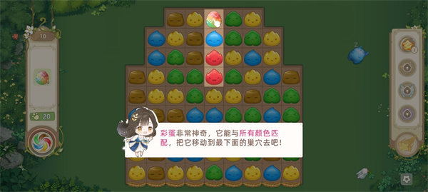 第10关之后就会出现【彩蛋】,此彩蛋非彼彩蛋,而是从上往下由红黄绿渐变色染成名副其实的彩蛋,彩蛋非常神奇,它能与所有颜色匹配,只需要把移动到最下面的巢穴就可收集。偷偷告诉你!彩蛋五彩变幻的特性更容易合成花弹哦~
