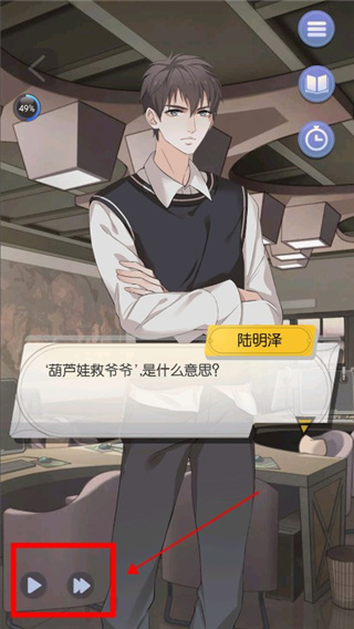11、后面故事的情节发展对话等是需要玩家手动点击的,怕麻烦的朋友可以选择左下方的播放符号就可以自动播放了;