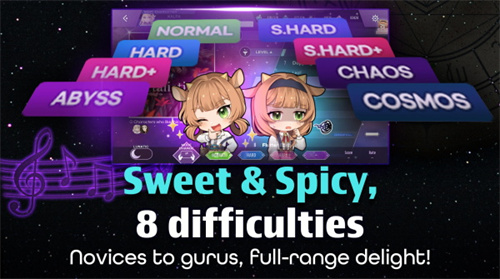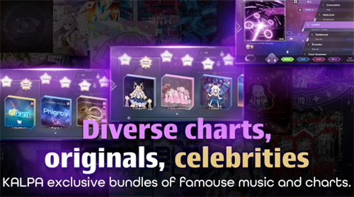 KALPA凭借精美的游戏画风和丰富的游戏关卡,在同类游戏中脱颖而出。游戏采用二次元美术风格,从角色的形象到不同的关卡场景,都非常有特色,搭配炫酷的打击特效,主打给玩家带来沉浸式的挑战体验。游戏涵盖了丰富多样的音乐曲目,每个曲目都对应一段剧情故事,玩家需要达到挑战的目标分数,才能解锁剧情和后续的音乐关卡。
