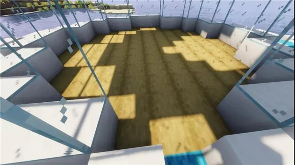 方便停船和钓鱼的码头:用去皮橡木原木往外延伸一个3x5的平台,平台下方用橡木栅栏向下延伸出简单的支柱,码头的最外侧贴上倒置的白桦木台阶