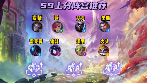 对于想娱乐的玩家来说,前期一定要连败开局,想上分的随意,能连胜开出六皮也是爽局,后期一般都是用泽丽和猪妹收菜没有大头可以换成塞恩,塞纳,因为S9的经济海克斯非常多,正常来说都是上8才开始收菜的,找不到泽丽可以换成厄斐琉斯,同时用寒冰替换雷克赛,没有其他五费卡也可以上个丽桑卓,中期三弗雷尔卓德强度很高,只要不是赌狗阵容基本都可以碾压,收菜以后就更不用担心了,30层以上的“霸王龙”血量就有4000+,就算没伤害也是一个不错的前排,何况伤害还很高。