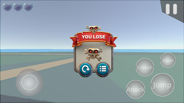 3、当血量消失为0则游戏失败,需要重新开始哦,比较麻烦,但好在重新复活后没有多余的操作,直接进入。