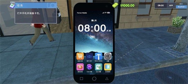 4、当来到卡牌店后,游戏就正式开始了,左上方会出现任务栏,根据任务进行游戏方便用户快速掌握卡牌店的经营;