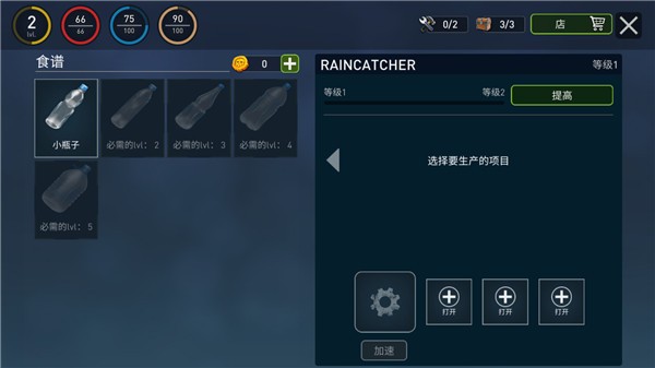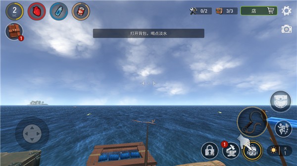 2、获取物资,制作武器,加固木筏或者建造堡垒;