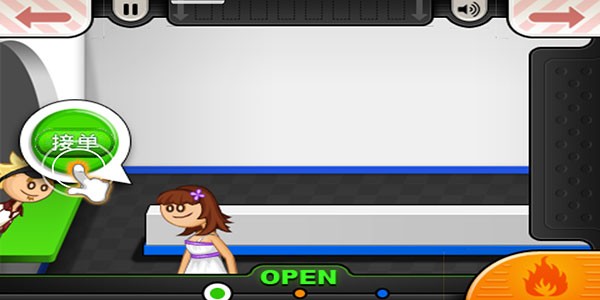 1、首先我们来到汉堡店铺的点单台页面,点击左侧的绿色接单按钮,在这里接受顾客点单。