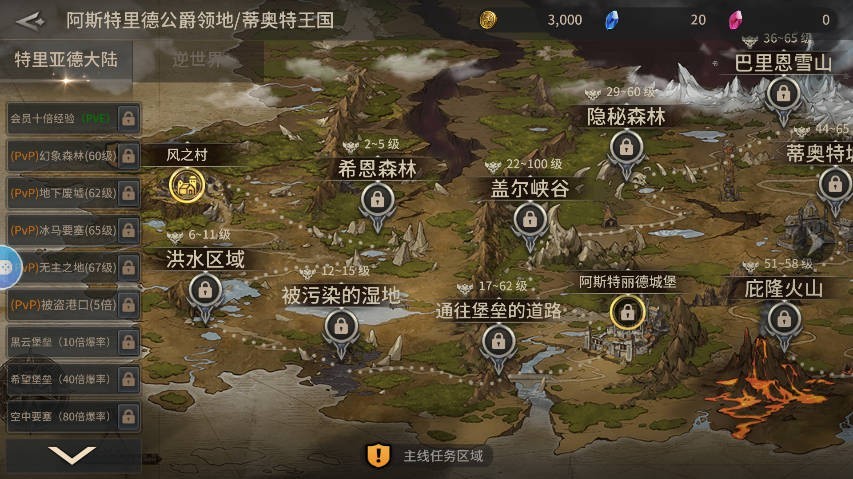 2、然后前期主要是升级,想要升级的话的可以通过主线任务(自动寻路,哈哈),主要目的还是让玩家熟悉这个游戏,做主线一般一天就能到70级了,如果想跳过这个过程,可以直接到会员地图挂机升级。