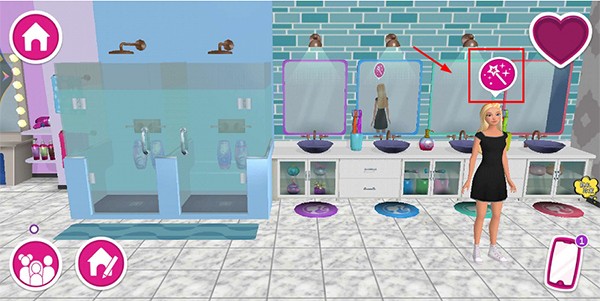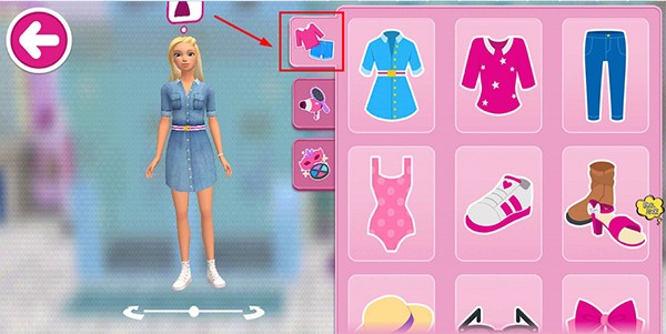 1、玩家进入游戏后,点击芭比头上图标进入换装模式