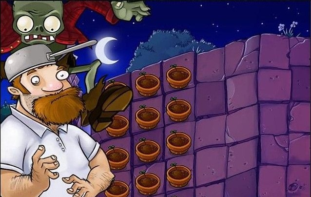 下图是疯狂大卫甚是无辜的表情,皮筋僵尸居然连疯狂大卫都能搬上去,它不怕皮筋断掉或胳膊脱臼么?