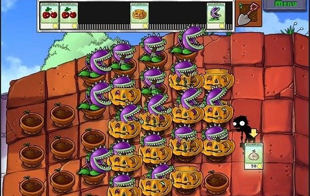 此关只有食人花和樱桃炸弹,食人花随便摆,吃一口,被吃掉,就这样吧,别让花盆被吃掉太多就好,很简单。