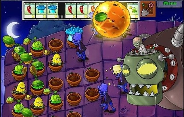 当然配合雪花豌豆对付巨型僵尸的效果会更好,大家可以总结出自己的应对策略。过关后得到西瓜投掷机,伤害很高,是最实用的投掷系植物。疯狂大卫那里还可以买到冰西瓜投掷机,附加减速效果。