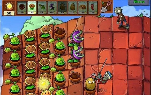 ● 多达50个的冒险模式关卡设定,从白天到夜晚,从天台到游泳池,场景变化多样。