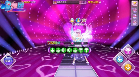不同难度和速度的歌曲,舞步的LV是会逐渐递增,舞步的方向键数量也会不断增加,最多会出现9个方向键。其中还会出现Final!!击中后可以进入ShowTime,得分会更高哦!