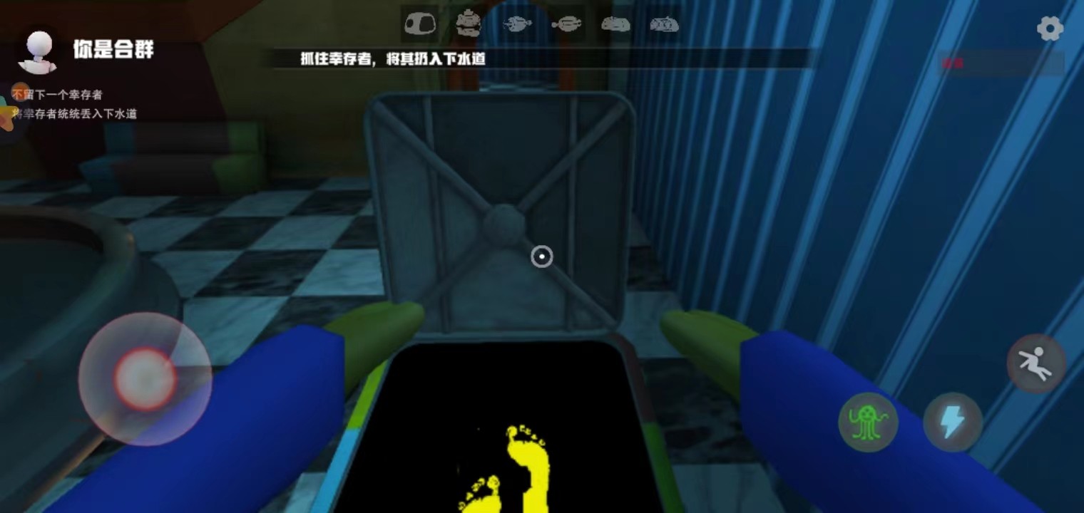 如果是怪物的话,那么你的任务则是阻止幸存者制造更多像你一样的玩具,不留一个幸存者,抓住后将他们通通丢入下水道。