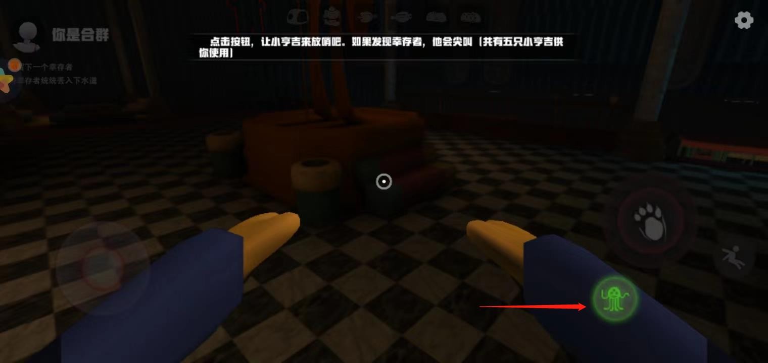 点击按钮,可以让小亨吉放哨,如果发现幸存者,它就会尖叫。(一共有5只)