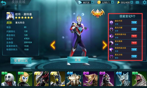 2、史诗级还原 全奥特英雄皮肤登场