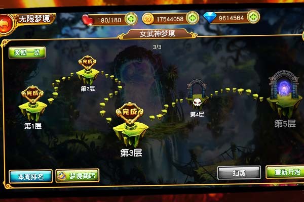 挑战“无限梦境”可以获得梦币与金币,梦币可在梦境商店购买各式各样的珍稀道具。