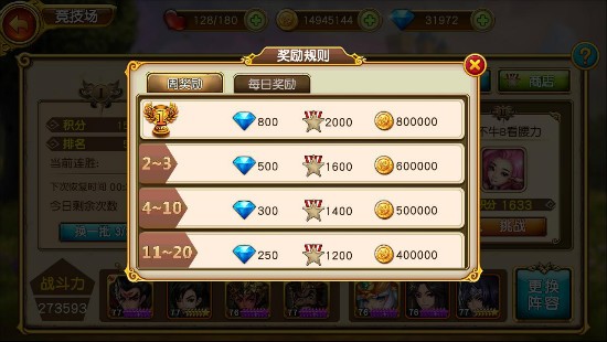 竞技场采用赛季制度。每个赛季玩家都会获得一定的积分。战胜对手可以获得一定的积分,被挑战失败会失去积分。
