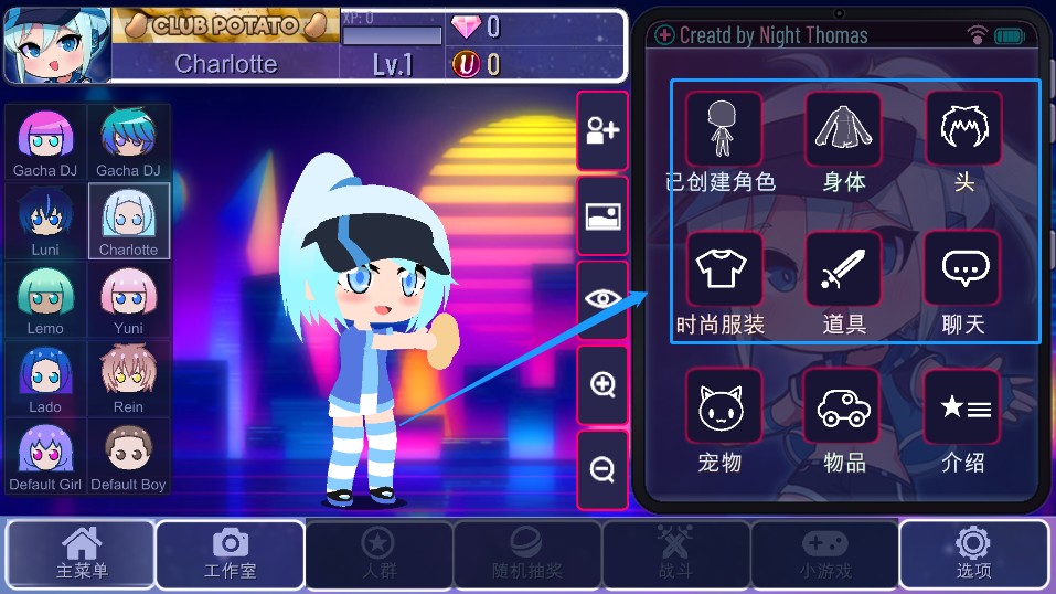 1、创建自己喜欢角色,进入工作室,设计不同场景,这是我们生活地方。