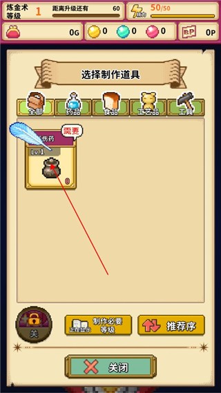 2、选择一个可以制作的药剂。