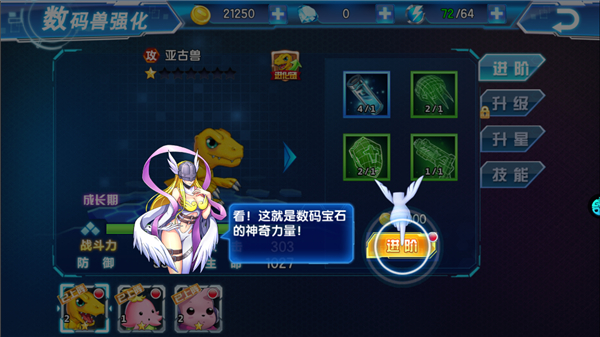7、点击进阶,进阶数码兽的实力会大大增强。