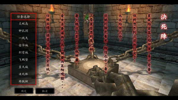 过场动画:孟星魂回头发现范璇已经死在地上了,正在奇怪的时候,屠城突然从地上爬了一起,并用带毒的暗器打伤了孟星魂,接着按动机关,孟星魂边掉入决死阵中。