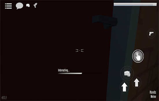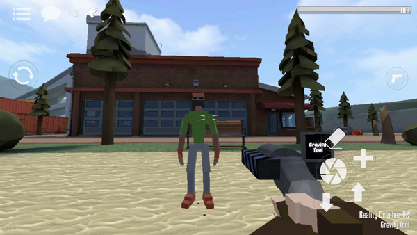 1、打开g沙盒仇恨最新版,想要拿枪就必须先找到一把枪,找到枪后需要将准心放到枪上,这时屏幕左边会出现一个手指按钮,按住手指按钮即可拾取;