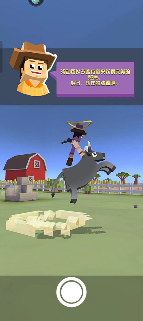 3、当我们靠近牛的时候,在松开屏幕,这个时候我们会继续跳跃,然后会来到牛身上,来到牛身上。