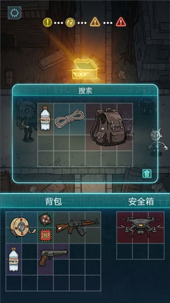 5、搜集到的物品可以放入背包或安全箱中,安全箱内物品不会遗失而背包物品会在失败时有几率的掉落出。