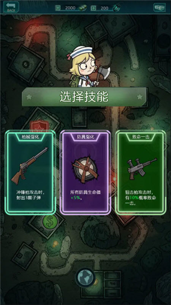 2、角色升级后可以选择新技能,强化生存和战斗能力以应对更强的敌人。
