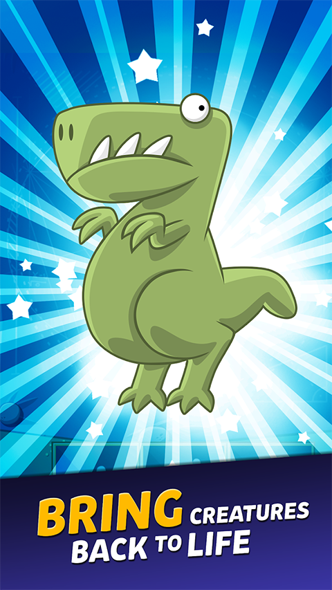 你看过原始恐龙吗?在游戏中可透过20种不同种的恐龙,30种不同的外观和50种酷炫的特点,创造出不同种类造型的恐龙,你还可以做出疯狂的举动,利用3到不同类型支激光束加以电击,或是你可以利用『配种』方式,产下突变品种,要是创造出珍贵品种,你可要好好的收藏『冰冻』起来!