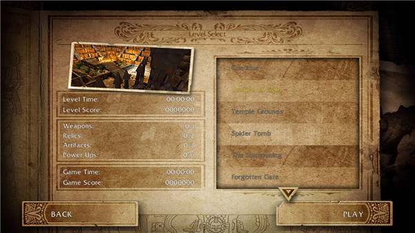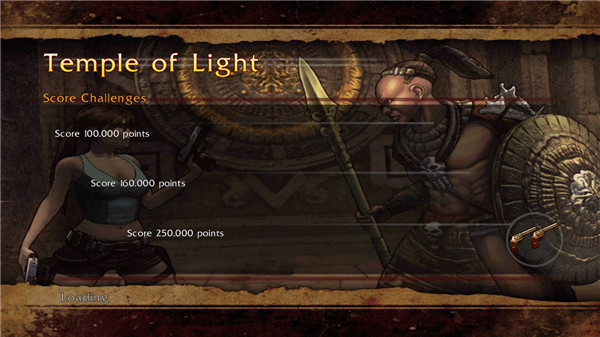 不过萝拉一开始就只有最基本的手枪(Handgun)可以使用,游戏中的每个关卡都设定有得分、过关时间、搜集物品等挑战任务,只要达成就可以得到新的武器、增加生命值和弹药值的上限、或是取得提升萝拉各种能力的工艺品(Artifacts)和圣物(Relic)。