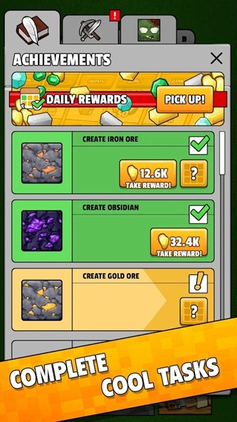 手指长按你想破坏的对象,就能快速的开始破坏了。不管是木头、石头甚至是小动物,统统不能放过。撸完后,就能出现小方块,触碰就能收集到,这些都是前期珍贵的材料。