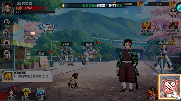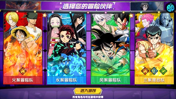 1、进入游戏前先选择冒险的伙伴,选择的不同会进入不同的板块,但所有角色均可在游戏中获得【小编选的是鬼灭之刃冒险伙伴】