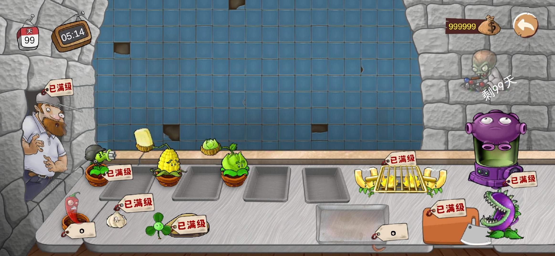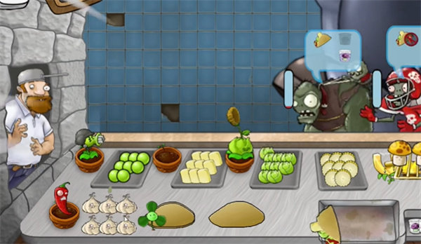 5、每一个僵尸都有一个耐心值,在耐心消耗完之前把沙威玛给僵尸就可以获得金币。
