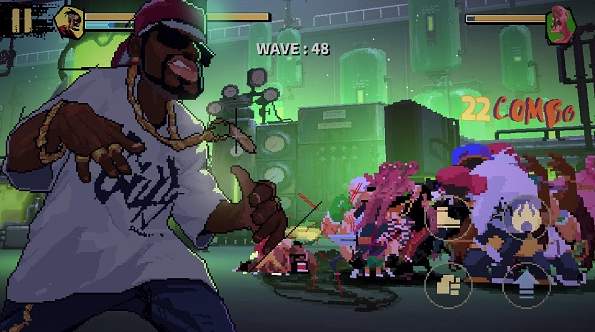 4、说起街机时代格斗游戏的经典操作,那便离不开四个方向键与拳击、脚踢、重力或者蓄力的组合了。相同或者不同按键之间都可以任意组合,产生不一样的惊人效果。例如,在“脚踢”之后继续按该键,可以在空中打飞敌人。但是在这个过程中,你绝不能偷懒。每一次出招之后,都必须松开按键,再次按下组合之后才能完成新的动作。既符合街机游戏的设定,又能更真实自由的感受畅快的格斗乐趣。