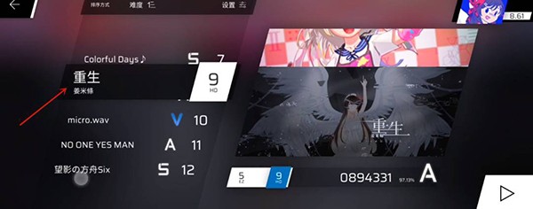 4、然后选择【望影の方舟six】这首歌,任意难度。