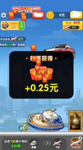 合成飞机:在游戏中合成飞机可以获得额外的红包奖励,增加游戏的乐趣和收益。