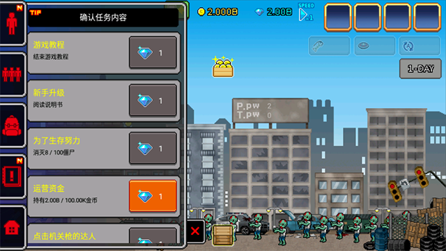 2、100天扫除僵尸用来升级武器等等,尽可能的强化自身抵御丧尸的进攻。