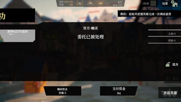 3、玩家要以尽可能低的赏金委托不同性格等级的英雄前去处理怪物
