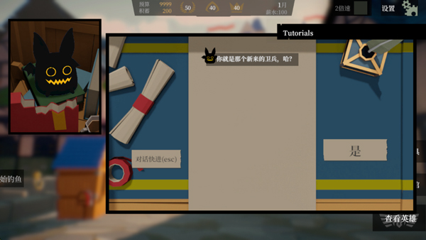 1、在这款游戏中,你将扮演一名身份低微的卫兵。你的主要工作是张贴有关怪物的悬赏,定下赏金等待英雄们承接任务。
