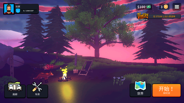 1、打开房车生活模拟器游戏,点击右侧start开始游戏;